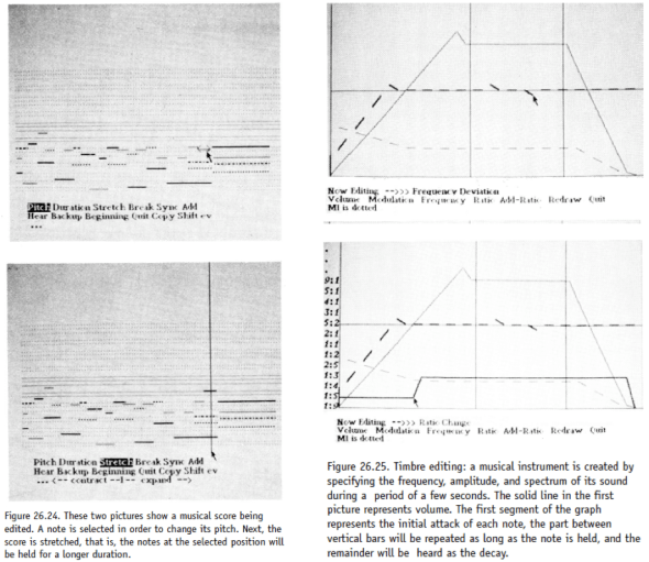 Recently, Kay has suggested that musical instruments and computers belong to the same category. In a 2003 interview, he remarked, “the computer is simply an instrument whose music is ideas.” This sounds like a statement from a culture in which musical instruments are primarily vehicles for already composed music. It is as if music exists prior to instruments, simply waiting to be accessed. That musical instruments and computers are now the same for Kay may reflect the failure of one the dreams behind the Dynabook: the dream that everyone would become computer “literate.” Discussing the thinking behind the programming language he developed for the Dynabook, Kay explained, “the ability to ‘read’ a medium means you can access materials and tools generated by others. The ability to ‘write’ in a medium means you can generate materials and tools for others. You must have both to be literate.” The early environments developed using Kay’s language emphasized the “writing” side of literacy: they were for such activities as painting, animation, and composing. On the Dynabook, kids wouldn’t learn how to play a musical instrument – they would create their own musical instruments, and write music with them. With the Dynabook, Kay and Goldberg hoped, “acts of composition and self-evaluation could be learned without having to wait for technical skill in playing.”