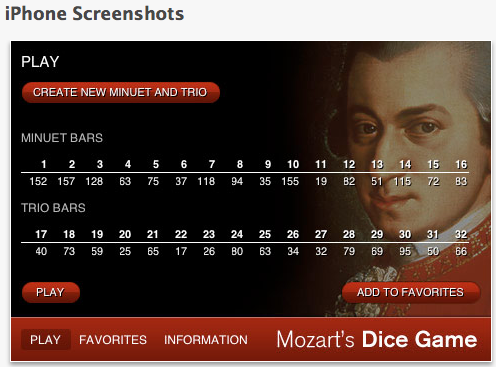 Mozart's Dice Game: The iPhone App